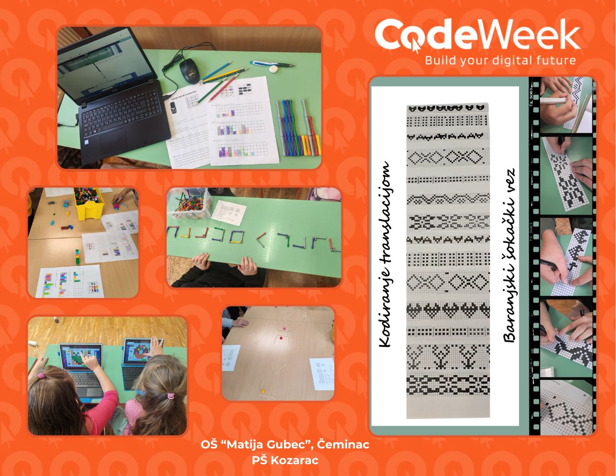 Učenici od 2. do 4. razreda OŠ „Matija Gubec“ i PŠ Kozarac na satima informatike s učiteljicom Jelenom Miočević prošli su različite aktivnosti čiji je cilj na zabavan način učenicima približiti programiranje. Učenici su bojali slike u kvadratnoj mreži, kodirali skrivene poruke koristeći se Nokiom 3310 i Pigpen šifru i tako ostavljali skrivene poruke koristeći drvene štapiće, štapiće u boji ili lego kocke koju su drugi učenici morali dekodirati, te su koristili različite online aplikacije koje su im pomogle u rješavanju prije navedenih zadataka. Razvijanjem vještina programiranja učenici razvijaju suradnju, bolje razumiju funkcioniranje tehnologije i uče rješavati probleme.