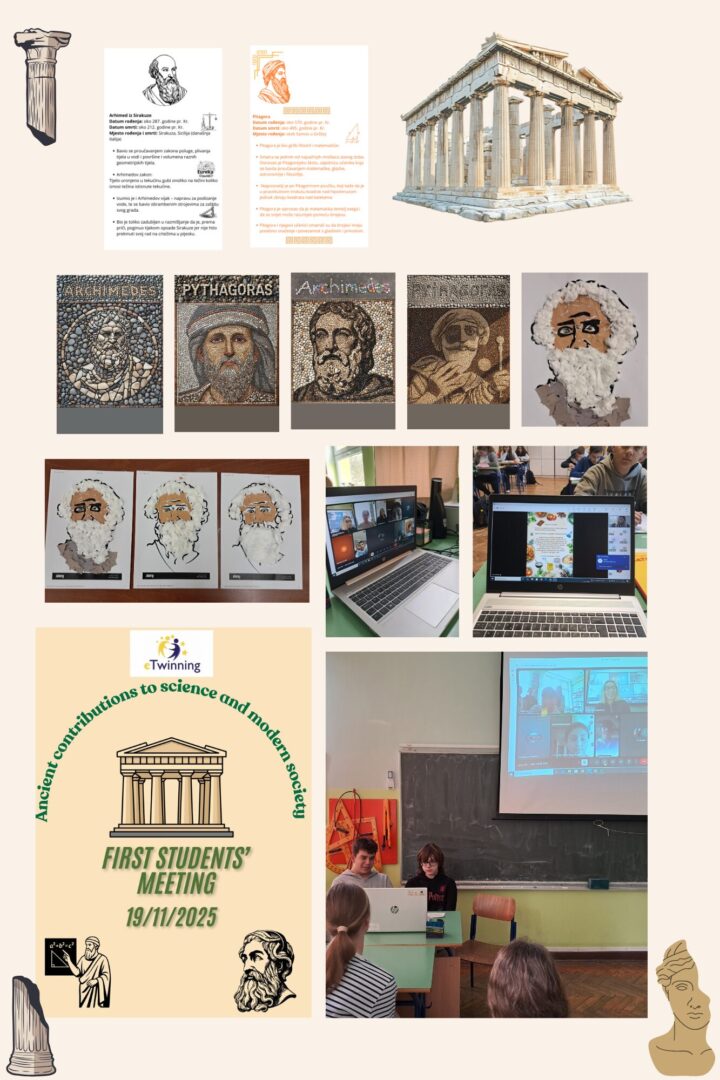 Naša škola sudjeluje u međunarodnom eTwinning projektu osmišljenom kako bi učenicima približio iznimne doprinose antičkih civilizacija te pokazao koliko su stari Grci i Rimljani utjecali na razvoj današnjeg društva. Kroz istraživački i suradnički rad učenici otkrivaju kako su antička dostignuća iz matematike, fizike, astronomije, medicine, filozofije, umjetnosti, sporta i arhitekture postavila temelje modernoj znanosti i tehnologiji. Osim znanstvenih aspekata, projekt se bavi i razumijevanjem ključnih društvenih pojmova kao što su država, demokracija, građanstvo i retorika – pojmova koji potječu iz antičkog doba, a i danas snažno oblikuju način na koji funkcionira suvremeno društvo. Učenici uz pomoć digitalnih alata, kreativnih radionica, timskog rada i primjene stranih jezika povezuju prošlost i sadašnjost, istovremeno razvijajući ključne kompetencije 21. stoljeća. Projekt potiče interkulturalno razumijevanje, aktivno sudjelovanje učenika i vrednovanje zajedničke kulturne baštine, dok ujedno jača njihovo kritičko mišljenje, digitalnu pismenost i sposobnost suradnje u međunarodnom okruženju.